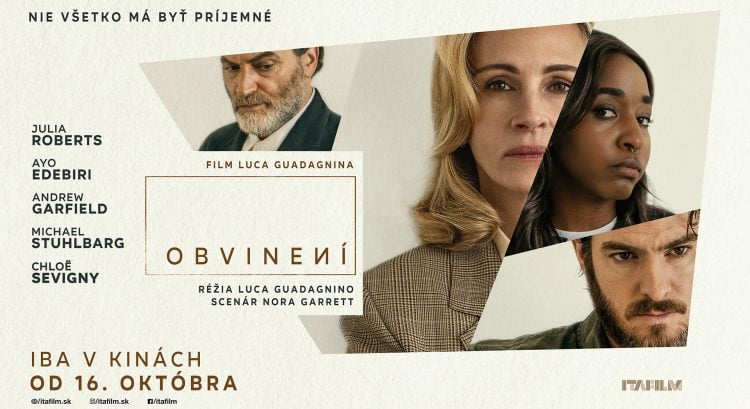 Ikonická Julia Roberts s Guadagninom objavuje nové temné polohy v postave Almy a potvrdzuje, prečo patrí medzi najväčšie herecké osobnosti Hollywoodu. Jedinou šepnutou vetou „Nie všetko ti má byť príjemné“ okamžite stiahne diváka do nepohodlia. Niet divu, že snímka bola s nadšením prijatá na filmových festivaloch v Benátkach a New Yorku. Kritici hovoria o „životnom výkone hodnom Oscara” v „nepríjemne vzrušujúcej morálnej dráme“, ktorá balansuje medzi otázkami sexu, mocenskými hrami a spoločenskými privilégiami. Aj preto sa o filme Obvinení budete baviť ešte dlho po odchode z kina.Film Obvinení prináša do kín Itafilm od 16. októbra.