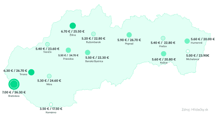 - Celorepublikový priemer: 7,10 €