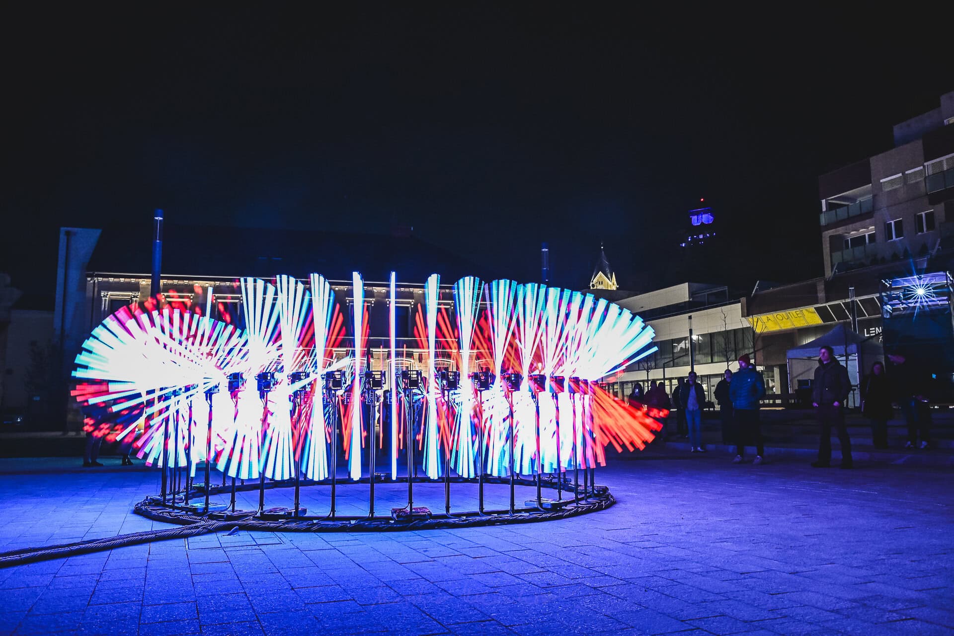 Na úvod festivalu zaplnila audiovizuálna show FVLCRVM priestranstvo pred Posádkovým klubom (ODA) a z monumentálnej fasády spravila pulzujúcu scénu. Po nej priestor pred ODA obsadilo dielo FLUX od francúzskeho Collectif Scale, ktoré tancom svetelných tyčí priťahovalo pozornosť okoloidúcich.